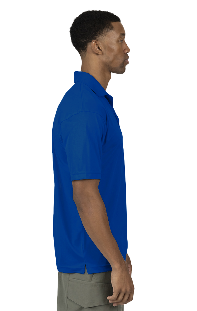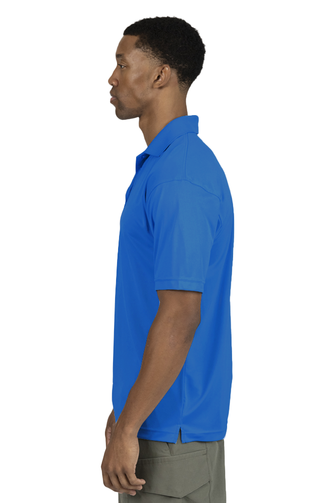 For a prestigious polo perfect for all occasions, look no further than this 3.8 oz. men's value snag-resistant wicking polo shirt! Made of 100% polyester and featuring BLU-X-DRI protection with UPF 30 rating designed to keep you cool and dry, this eye-catching item features matching buttons, a rib-knit and curl-free collar, a taped neck and shoulder and a straight bottom. Don't miss out on this wow-worthy wearable! Available in many colors and sizes ranging from S-6XL and Tall sizes LT-3XT for colors: Optic Yellow, Safety Orange, Royal, Navy, Graphite, and Black only.